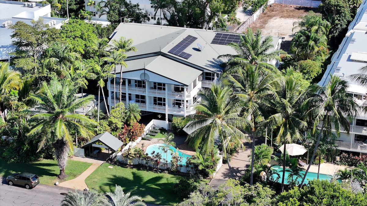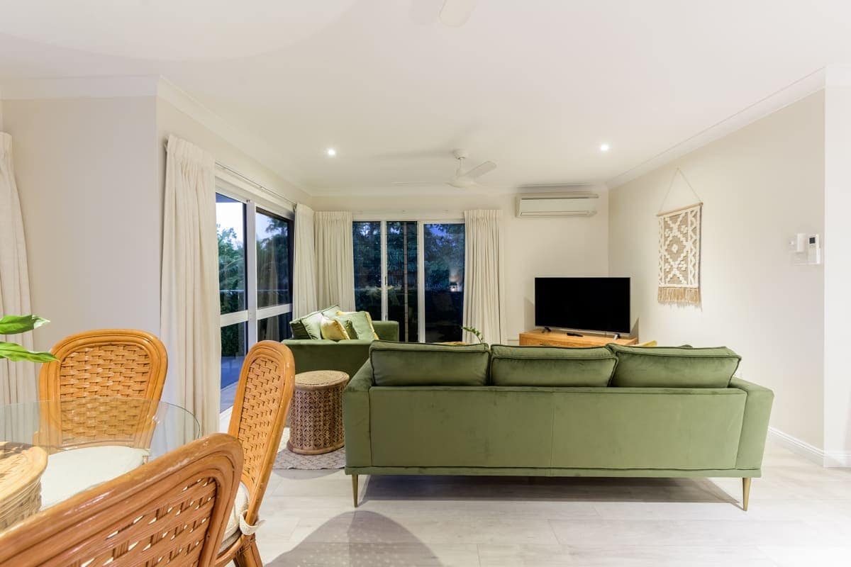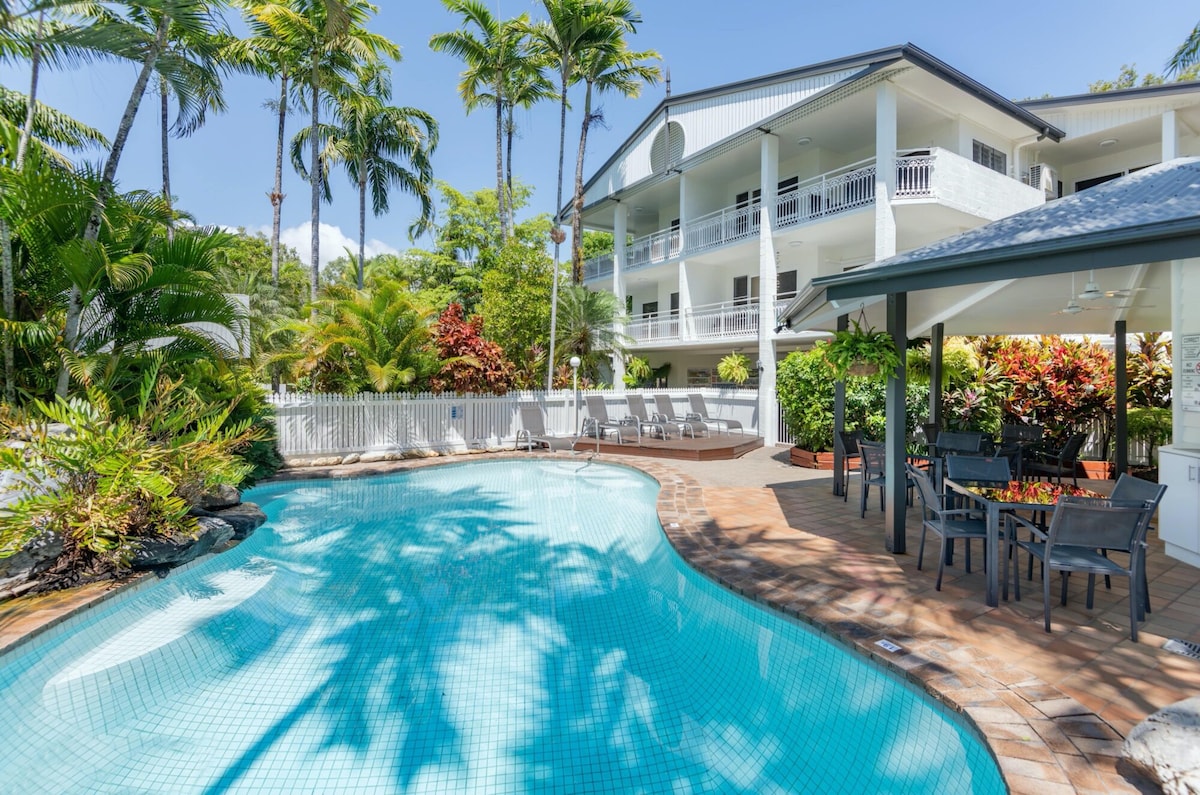 Relax in tropical luxury in this top-floor, 2‑bedroom, 2‑bath penthouse nestled within Garrick House, just steps from Four Mile Beach and buzzing Macrossan Street—it blends resort comfort with self-contained convenience.