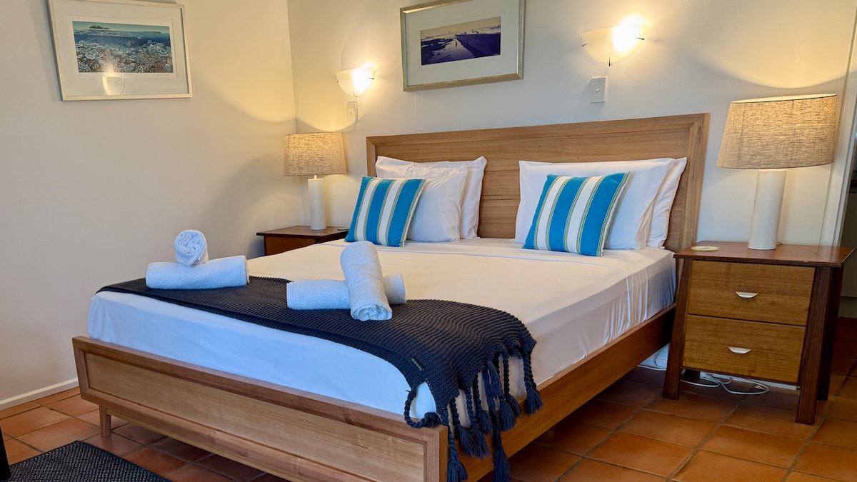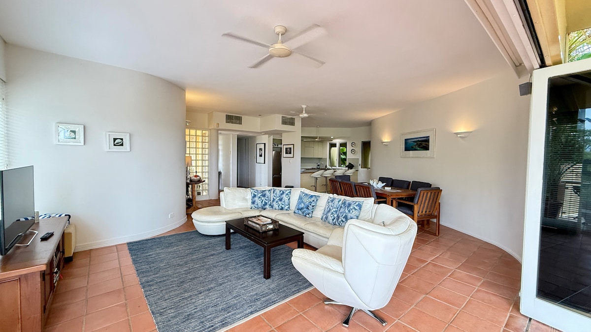 The spaceInside, you’ll find a light-filled open-plan living and dining area with a comfortable lounge, flat-screen TV, and seamless flow onto a private balcony. Here you can enjoy alfresco dining surrounded by tropical palms while soaking up the refreshing sea breeze.